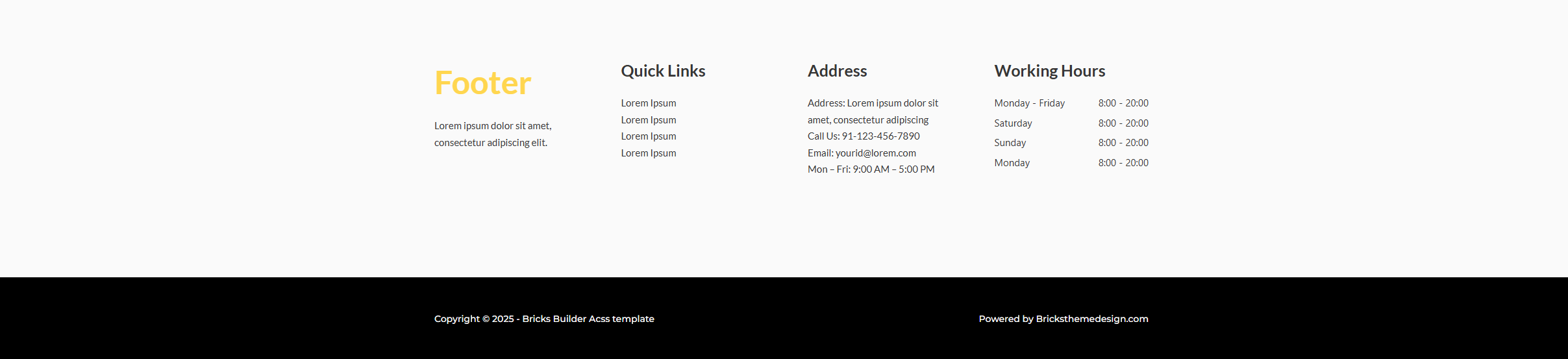 Bricks Theme Design helps you speed up your website design and development process, drastically reducing build time. We offer modern, professionally designed templates — including animated ones — to add dynamic visual appeal and interactivity to your projects. Whether you're building a portfolio, business site, or landing page — our templates are fast, responsive, and ready to use.